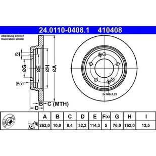 średnica zewnętrzna [mm]: 262,0; Grubość tarczy hamulcowej [mm]: 10,0; Minimalna grubość [mm]: 8,4; Typ tarczy hamulcowej: pełny; Przetwarzanie: