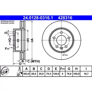 średnica zewnętrzna [mm]: 303,0; Grubość tarczy hamulcowej [mm]: 28,0; Minimalna grubość [mm]: 25,0; Typ tarczy hamulcowej: wentylowany; Przetwarzanie: