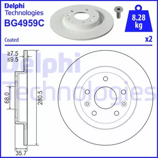 pokryty; średnica zewnętrzna [mm]: 281; Grubość tarczy hamulcowej [mm]: 9,5; Minimalna grubość [mm]: 7,5; Średnica otworu centrującego [mm]: 68; Wysokość [mm]: