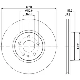 Typ tarczy hamulcowej: z wentylacją wewnętrzną; średnica zewnętrzna [mm]: 318; Grubość tarczy hamulcowej [mm]: 30; Wysokość [mm]: 57,2; Minimalna grubość [mm]: