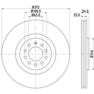 Typ tarczy hamulcowej: z wentylacją wewnętrzną; średnica zewnętrzna [mm]: 312; Grubość tarczy hamulcowej [mm]: 25; Wysokość [mm]: 34; Minimalna grubość [mm]: