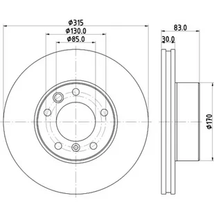 Typ tarczy hamulcowej: z wentylacją wewnętrzną; średnica zewnętrzna [mm]: 315; Grubość tarczy hamulcowej [mm]: 30; Wysokość [mm]: 83; Minimalna grubość [mm]: