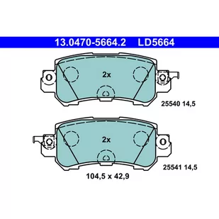 Szerokość [mm]: 104,5; Wysokość [mm]: 42,9; Grubość [mm]: 14,5; Styk ostrzegawczy o zużyciu: z akustycznym czujnikiem zużycia; Liczba wskazań zużycia [na oś]: