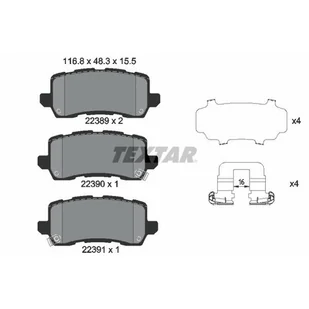 Szerokość [mm]: 116,8; Wysokość [mm]: 48,3; Grubość [mm]: 15,5; Styk ostrzegawczy o zużyciu: z akustycznym czujnikiem zużycia; Liczba wskazań zużycia [na oś]: