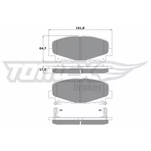 Strona zabudowy: Oś przednia; Grubość [mm]: 17; Szerokość [mm]: 151,8; Wysokość [mm]: 64,7; Styk ostrzegawczy o zużyciu: