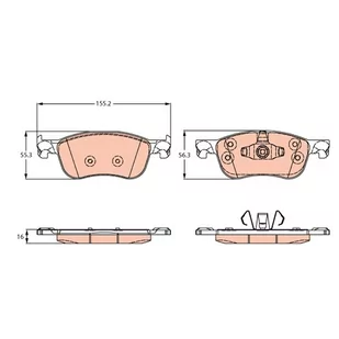 Ograniczenia producenta: ATE; Szerokość [mm]: 155,2; Wysokość [mm]: 55,3; Grubość [mm]: 16; Styk ostrzegawczy o zużyciu: nieprzygotowany dla wskaźnika zużycia; Oznaczenie kontrolne: E9 90R-02A0107/4955