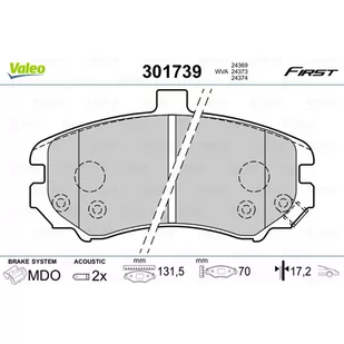 Strona zabudowy: Oś przednia; System hamulcowy: MANDO; Szerokość [mm]: 132; Wysokość [mm]: 70; Grubość [mm]: