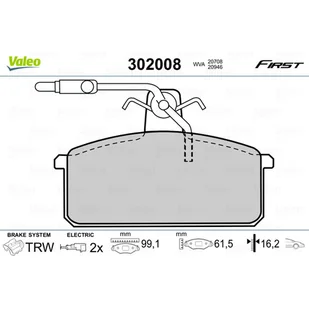 Strona zabudowy: Oś przednia; System hamulcowy: TRW; Szerokość [mm]: 99; Wysokość [mm]: 61,5; Grubość [mm]: