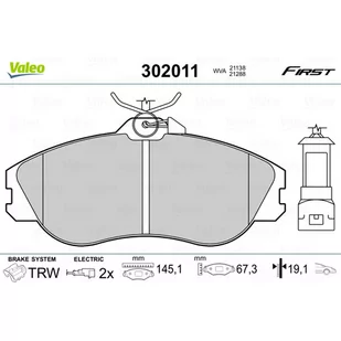 Strona zabudowy: Oś przednia; System hamulcowy: TRW; Szerokość [mm]: 145; Wysokość [mm]: 67,3; Grubość [mm]: