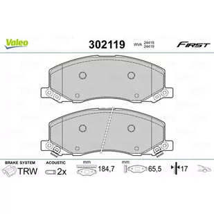 Strona zabudowy: Oś przednia; System hamulcowy: TRW; Szerokość [mm]: 185; Wysokość [mm]: 65,5; Grubość [mm]: