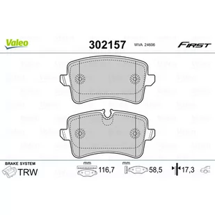 Parametry: Strona zabudowy: System hamulcowy: TRW Szerokość: 116,7 mm Wysokość: 58,5 mm Grubość: