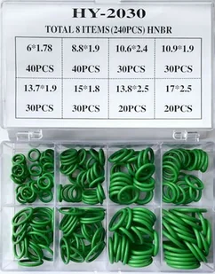 ZESTAW 240 SZT ZIELONYCH O-RINGÓW DO KLIMATYZACJI 8 ROZMIARÓW