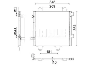 Rodzaj chłodnicy: Rury chłodzące równoległe Długość sieci [mm]: 348 Szerokość sieci [mm]: 362 Głębokość sieci [mm]: 16 Dolot - Ø [mm]: