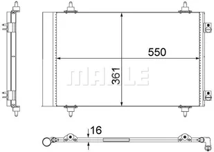 Rodzaj chłodnicy: Rury chłodzące równoległe Długość sieci [mm]: 550 Szerokość sieci [mm]: 361 Głębokość sieci [mm]: 16 Dolot - Ø [mm]: