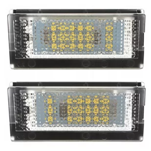 Zestaw lampek LED do tablicy rejestracyjnej 2 sztuki - by AutoTune Jasny biały kolor LED, brak błędu uszkodzonej żarówki, łatwa instalacja Samochód: BMW 3 (E46) 3 Zwiedzanie (E46) Zatwierdź: tak - E4 Korzyści: System CAN-BUS - brak komunikatów i błędów o spalonej żarówce, szybki i łatwy montaż PLUG & PLAY typ 3528SMD -18 x 2W LED