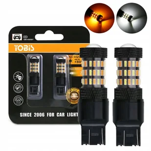 Żarówki do jazdy dziennej LED z kierunkowskazem W21/5W 7443 dwukolorowe YOBIS ⦁ komplet 2 żarówek przeznaczony do istniejącej instalacji zestaw nie zawiera dodatkowych przekaźników i rezystorów ⦁ gdy pomarańczowe światło jest włączone to białe światło gaśnie ⦁ do jazdy dziennej ⦁ kierunkowskazy Technologia LED: Rodzaj Diody LED: Wysokiej jakości SMD 4014. Ilość Diod: 54 diody, w tym 27 białych i 27 pomarańczowych.