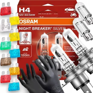 ✅ OSRAM H4 NIGHT BREAKER SILVER +100% + W5W LED CLEAR + ZESTAW BEZPIECZNIKÓW + RĘKAWICZKI NITRYLOWE ✅ ŻARÓWKA OSRAM WYTWARZAJĄCA JAŚNIEJSZE ŚWIATŁO PRZY ZACH...