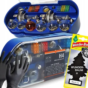 ✅ ZESTAW ZASOBNIK KOMPLET ŻARÓWEK ZAPASOWYCH 2x H4 12V + BEZPIECZNIKI 30 + RĘKAWICZKI NITRYLOWE + WUNDER BAUM BLACK-ICE ✅ W SKŁAD ZESTAWU WCHODZĄ: ⭐ ŻARÓWKI:...