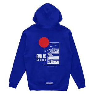 Bluza z kapturem Mitsubishi Lancer Evo IX niebieska Jeśli jesteś prawdziwym fanem motoryzacji i kochasz japońskie samochody, ta bluza z kapturem jest dla Cie...