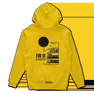 Bluza z kapturem Mitsubishi Lancer Evo IX żółta Jeśli jesteś prawdziwym fanem motoryzacji i klimatu jdm, stance oraz drift, ta bluza z kapturem jest dla Cieb...