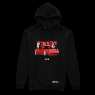 Czarna bluza z kapturem Mazda Miata czerwona Jeśli jesteś prawdziwym entuzjastą motoryzacji i kochasz klimat jdm, stance i drift, ta czarna bluza z kapturem ...