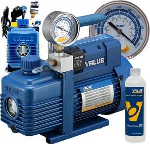 Pompa próżniowa do klimatyzacji i autoklimatyzacji VALUE V-i120SV z elektrozaworem i wakuometrem.