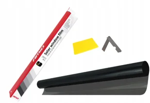 Folia do przyciemniania szyb o wymiarach 50x300 cm, przepuszczalność światła około 1% W zestawie: - folia - plastikowa rakla - nożyk W naszej ofercie dostępny jest ekspozytor na folie wykonany z twardego kartonu, który pomieści 96 opakowań. Wymiary ekspozytora: 65 x 44 x 102 cm (szer, gł, wysokość całkowita z produktem)