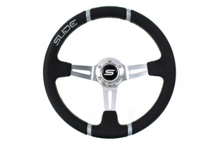 Kierownica sportowa firmy SLIDE wykonana z najwyszej jakoci materiaw. rednica: 35 cm Odsadzenie: 8cm Materia: aluminium i skra naturalna. W zestawie klakson, rubki montaowe, przewody do podczenia klaksonu i naklejka na klakson z logiem producenta.