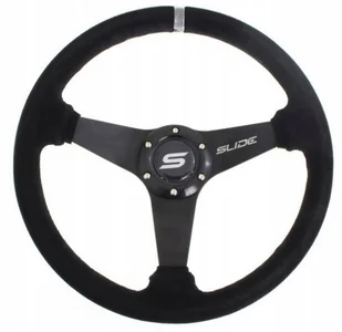 Kierownica sportowa firmy SLIDE wykonana z najwyszej jakoci materiaw. rednica: 35 cm Odsadzenie: 0 cm Materia: aluminium i zamsz. W zestawie klakson, rubki montaowe, przewody do podczenia klaksonu i naklejka na klakson z logiem producenta.