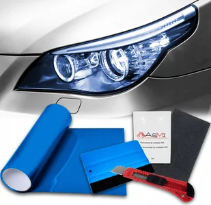Niebieska Folia Do Lamp Reflektorów 2M Z Raklą Płynem Nożykiem Duży Zestaw