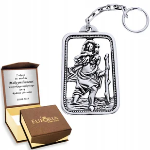 Srebrny brelok do kluczy z wizerunkiem Św. Krzysztofa patrona kierowców.
