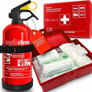 ✅ GAŚNICA SAMOCHODOWA PROSZKOWA Z WIESZAKIEM OGNIOCHRON 1 KG + APTECZKA PIERWSZEJ POMOCY Zaprojektowana specjalnie dla zabezpieczania samochodów osobowych, ł...