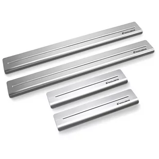 Wysokiej jakości nakładki progowe marki CRONI. Najważniejsze cechy nakładek progowych: gwarantują ekskluzywny wygląd auta są odporne na trudne warunki atmosferyczne i drogowe (sól, piach, wilgoć) Bardzo prosty montaż nakładek: Należy oczyścić, następnie odtłuścić próg i przykleić nakładkę nakładki mają już dwustronną, bardzo mocną taśmę klejącą. W komplecie ściereczka do odtłuszczania powierzchni.