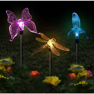 Wysokiej jakości konstrukcja. Solarne oświetlenie ogrodowe jest trwałe i wodoodporne, o ile nie jest zanurzone w wodzie. Mogą działać w większości warunków pogodowych. Zmieniające kolor lampy solarne LED w kształcie kolibra, ważki lub motyla.
