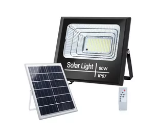 LED reflektor z panelem solarnym. Możliwość zmiany jasności światła. Łatwy w instalacji. Ładuje się za pomocą światła słonecznego w ciągu dnia. Świeci przez całą noc (do 12 godzin).