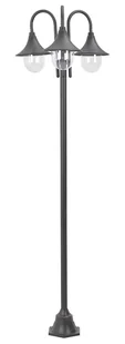 Parametry: Materiał: aluminium + klosze z PVC Kolor: brązowy Źródło światła: E27, 3x60W Stopień ochrony: IP44 Wymiary całkowite: 63 x 63 x 220 cm Średnica klosza: