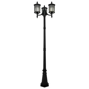 Lampa stojąca ogrodowa 3 punktowa ze szklanymi kloszami. Elementy metalowe wykończone w kolorze czarnym. Lampa pozwoli nam dekoracyjnie podświetlić ogród, podjazd do garażu, balkon czy taras.