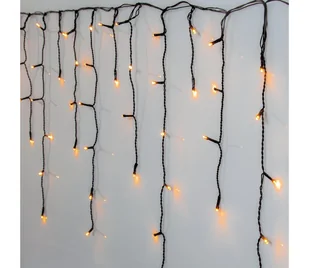 Łańcuch/zasłona świąteczna idealna do dekoracji ogrodów. Dzięki niskiej intensywności światła służy jako oświetlenie dekoracyjne. Zasilanie za pomocą przewodu zasilającego (transformator w zestawie). Kolor światła: ciepła biel.