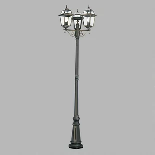 Trzylampowa oprawa słupowa New Orleans - latarnie skierowane do góry Dzięki tej trzylampowej oprawie słupowej o antycznym designie można odpowiednio i bezpiecznie oświetlić wszystkie ścieżki posesji, na przykład dojście do domu lub wjazd do garażu. Lampy, które zostaną włożone do trzech lampionów, promieniują swoim światłem bez przeszkód przez przezroczyste szkło. Wyposażona w ochronę przed wodą rozpryskową (IP44), oprawa słupowa New Orleans wytrzymuje również niekorzystne warunki atmosferyczne.