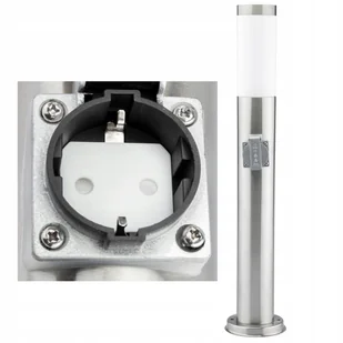 Lampa Ogrodowa Zewnętrzna E27 SREBRNY SŁUPEK 65cm z Gniazdem 230V
