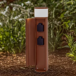 Aluminiowy słupek oświetleniowy Corban w kolorze rdzy z dwoma praktycznymi gniazdami Lampka Corban łączy w sobie nowoczesny design z funkcjonalnością do użytku na zewnątrz. Wykonana z wytrzymałego odlewu aluminiowego, lampa ma atrakcyjne wykończenie w kolorze rdzy, które uzupełnia biały dyfuzor światła. Dzięki stopniowi ochrony IP44 jest optymalnie zabezpieczona przed wnikaniem ciał obcych i bryzgami wody, co czyni ją idealnym wyborem do oświetlenia tarasu. Słupek oświetleniowy Corban to nie tylko atrakcja wizualna, ale także praktyczne funkcje dodatkowe: Wyposażona w dwa gniazda, pozwala na podłączenie dodatkowych urządzeń - wygodne rozwiązanie dla terenów zewnętrznych.
