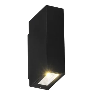 Nowoczesny kinkiet ścienny ogrodowy 2 punktowy z wbudowanym źródłem światła LED świecący góra-dół. Elementy metalowe w kolorze czarnym. 2 kołki rozporowe w zestawie.