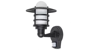 Kinkiet zewnętrzny z czujnikiem ruchu DARRINGTON Góra E27 IP44 Zewnętrzna lampa ścienna Darrington wyposażona jest w czujnik ruchu oraz reprezentuje styl nowoczesny. Czarna metalowa oprawa uzupełniona jest opalowym szklanym kloszem oraz okrągłą, czarną dekoracyjną podstawą. Do wyróżniających ją cech należą okrągły kołnierz oraz cylindryczna, żebrowana oprawa otaczająca klosz, dzięki którym kształt lampy przypomina kandelabr oraz tworzy wyjątkową atmosferę na werandzie lub przy wejściu do Twojego domu. Lampa może być używana z pojedynczym, energooszczędnym źródłem światła o mocy do 20 W. Typ gniazda:
