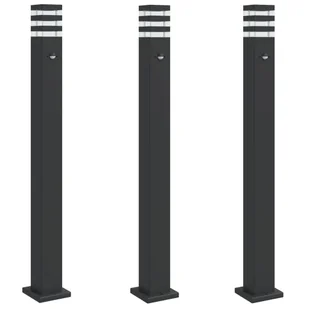 Zewnętrzne lampy stojące, z czujnikami, 3 szt., czarne, 110 cm