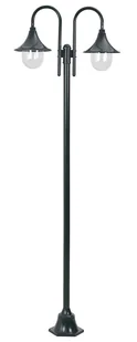 Parametry: Materiał: aluminium + klosze z PVC Kolor: zielony Źródło światła: E27, 2x60W Stopień ochrony: IP44 Wymiary całkowite: 72 x 25 x 220 cm Średnica klosza:
