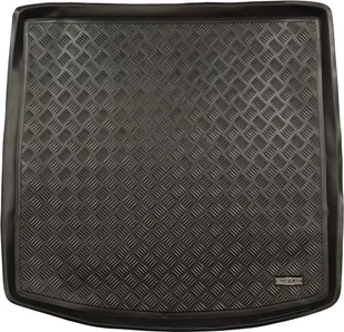 górna podłoga bagażnika Oferowany wkład (mata) do bagażnika została precyzyjnie zaprojektowana do kształtu bagażnika biorąc pod uwagę nie tylko markę / model czy wersję nadwozia, ale także rodzaj wyposażenia, dzięki czemu mata pasuje idealnie do wnęki przestrzeni bagażowej. Mata wytwarzana jest z wysokiej jakości tworzywa sztucznego a nowością jest pokrycie wierzchniej warstwy gumową powłoką. Wysoki kołnierz ochronny dookoła wykładziny skutecznie zatrzymuje wodę i brud, zabezpieczając oryginalną wykładzinę bagażnika przed zabrudzeniem, a dzięki swojej elastyczności rant dolega idealnie do brzegów bagażnika nie pozostawiając pustych przestrzeni. Mata została zaprojektowana w sposób umożliwiający korzystanie z uchwytów na pasy do mocowania ładunku umiejscowionych na podłodze i ścianach bagażnik. Gumowa powłowka maty jest bardzo łatwa w utrzymaniu czystości.