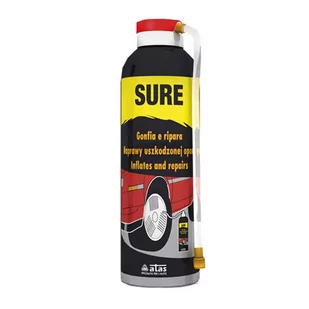 ATAS SURE DO NAPRAWY OPON 300ML Producent: Atas EAN: 8002424001962 SKU: 10097 Waga: 0. 3 Atas SURE do naprawy opon 300ml preparat do awaryjnego pompowania przebitej opony. Dzięki zastosowaniu wkręcanej końcówki wężyka w ciągu minuty pompuje oponę, dzięki czemu można bezpiecznie kontynuować jazdę do najbliższego punktu wulkanizacyjnego.