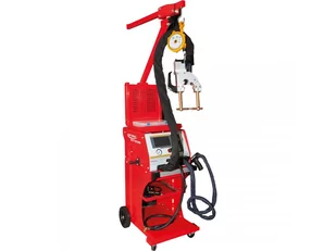 Zgrzewarka ma szerokie zastosowanie zarówno w warsztatach wykonujących profesjonalne naprawy blacharskie dla motoryzacji jak i w przemyśle. Zgrzewarka wyposażona w wysięgnik z regulowanym wysuwem i balanserem EW-5 L=1,5 m 3-5 kg. Długość wysięgnika max/ min: 140 cm/ 90 cm