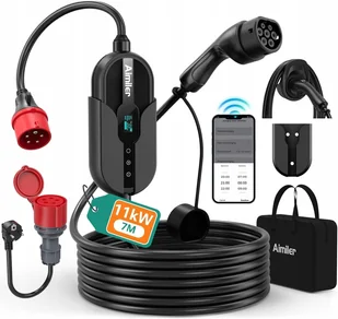 AIMILER Mobilna Ładowarka EV 11kW Wallbox Typ 2 CEE 7m 3-fazy App IP66