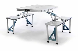 Składany stół aluminiowy z zabudowanymi ławami dla 4 osób
